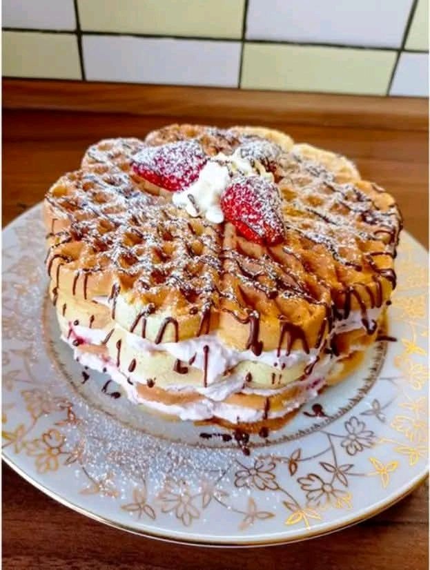 Waffeltorte mit 500 g Quark und 550 g Erdbeeren – wie ich sie liebe