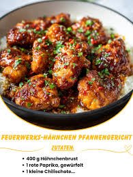 Das Feuerwerks-Hähnchen Pfannengericht ist eine wahre Geschmacksexplosion auf dem Teller. Mit zarten Hähnchenstreifen, frischem Gemüse, einer würzigen Sauce und optionaler Schärfe durch Chili vereint dieses Gericht alles, was man sich …